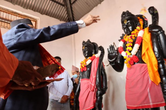 चितवन । नेकपा एमालेका अध्यक्ष केपी ओलीले माडी अयोध्याधामस्थित राम मन्दिरमा पूजा एवं दर्शन गरेका छन् । ओलीले मूर्तिहरूमा पूजा गर्नुका साथै मन्दिरको परिक्रमा गरेका हुन् ।