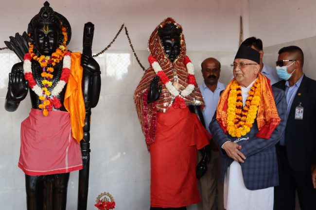 दुईदिने विभिन्न कार्यक्रममा सहभागी हुन ओली सोमबार चितवन आएका हुन् । प्रधानमन्त्री भएका बेला ओलीले यहाँ भगवान रामको जन्म भएको र यसै ठाउँमा राम मन्दिर निर्माण गरी राम, लक्ष्मण, सीता र हनुमानको मूर्ति स्थापना गर्न निर्देशन दिएका थिए । गत ८ वैशाखमा राम मन्दिरमा मूर्ति स्थापना गरिएको हो ।