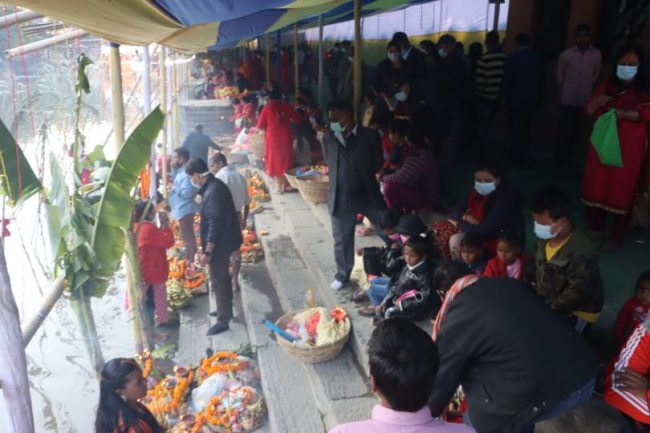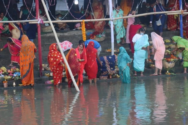 आज बिहानदेखि पानीसमेत नपिएका व्रतालुहरू साँझपख जलाशयमा पानीमा डुबेर अस्ताउँदो सूर्यलाई अर्घ्यसहित पूजा गर्दछन् ।