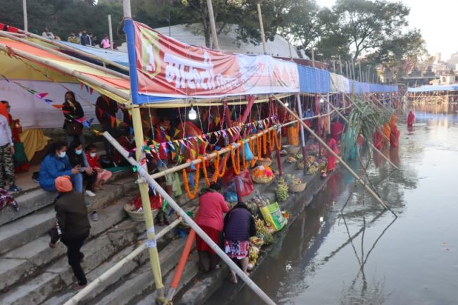 देशभरका तलाउ तथा नदीहरू छठको लागि सिंगारिएको काठमाडौंको गौरिघाटस्थित बागमती नदी पनि दुलही झै सिंगारिएको छ। नदीको एकातिर श्रदालु भक्तजनका लागि त्रिपाल लगाइएको छ भने अर्को तर्फ विभिन्न झिलीमिली बत्तीहरूले उज्यालो दिइरहेका छन्।