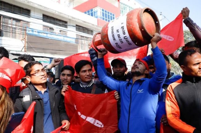 पेट्रोलियम पदार्थको मुल्यवृद्धि विरुद्ध सिलिन्डरसहित प्रदर्शन (फोटोफिचर)