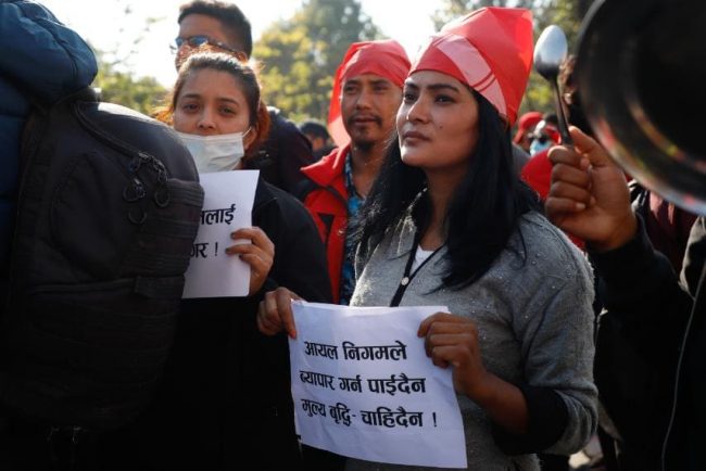सरकारले केही समयअघि खाना पकाउने ग्याससहित पेट्रोलियम पदार्थको मूल्य बढाएपछि निरन्तर आन्दोलन जारी छ ।