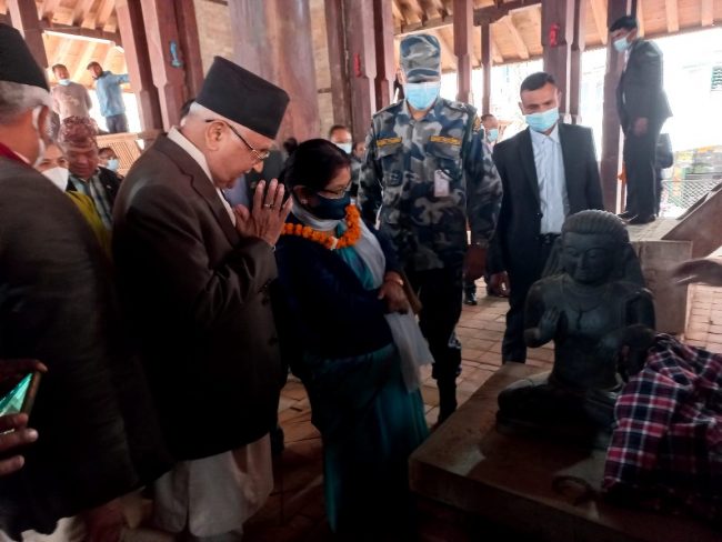 काष्ठमण्डपको पुनर्निर्माणप्रति एमाले अध्यक्ष ओलीको चासो (फाेटाेफिचर)