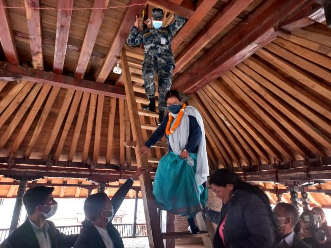 निर्माणाधीन काष्ठमण्डपको निर्माणका विषयमा पूर्व प्रधानमन्त्रीसमेत रहेका एमाले अध्यक्ष केपी शर्मा ओलीले शुक्रबार अवलोकन गरेका छन्।