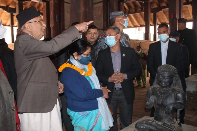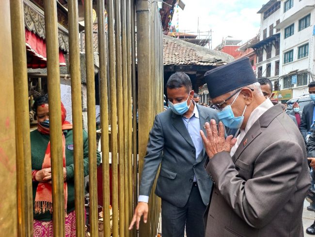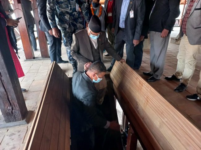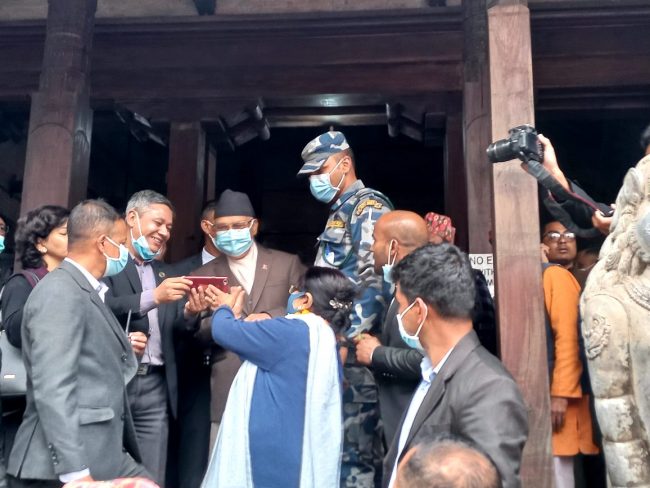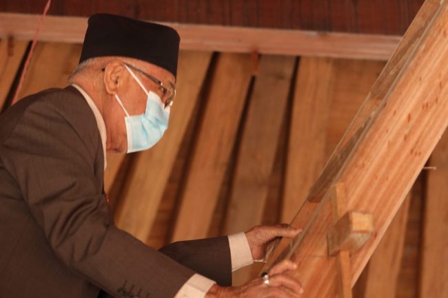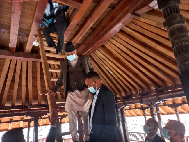 काष्ठमण्डपको पुनर्निर्माणप्रति एमाले अध्यक्ष ओलीको चासो (फाेटाेफिचर)