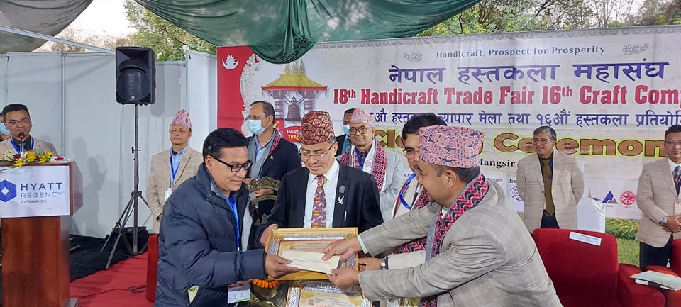 काठमाडौं ।१८औँ हस्तकला व्यापार मेला तथा १६औँ हस्तकला प्रतियोगिता सम्पन्न भएको छ । नेपाल हस्तकला महासङ्घद्वारा काठमाडौँको ह्यात होटेलमा आयोजित तीन दिनसम्म चलेको मेलामा करिब रु आठ करोडको कारोबार भएको हो ।