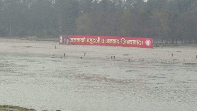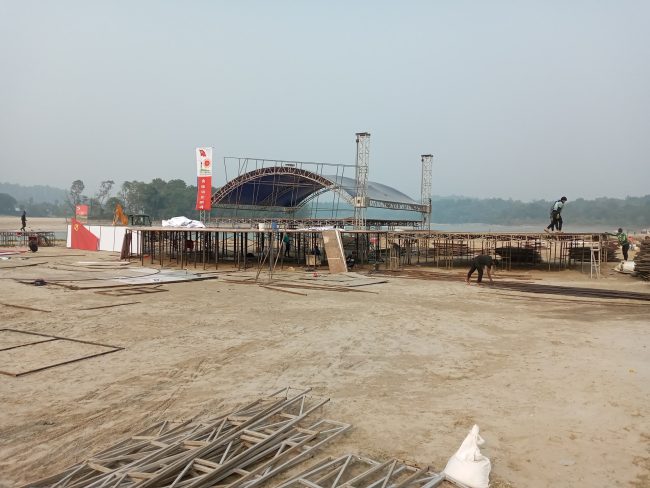 बुधबार बेलुकीसम्म मञ्चको ७५ प्रतिशत काम सकिने उनले बताए । उद्घाटन स्थलमा मञ्च निर्माणसँगै प्रचारप्रसारका साइन बोर्डहरू पनि धमाधम बनाइएको छ । नारायणी नदीको पारिपट्टी गैंडाकोटतर्फको किनारमा पनि एमालेको ठूलो बोर्ड राखिएको छ ।