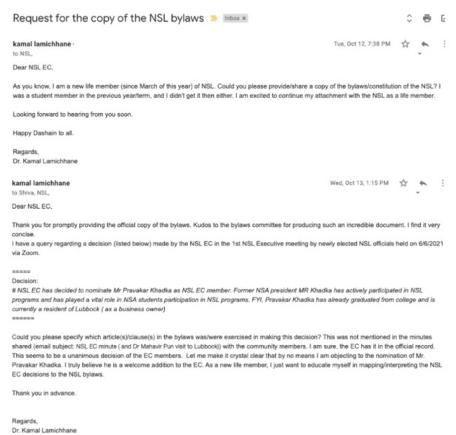 विधान मिचेर गरिएको यो नियुक्तिलाई लवक निवासी डा.कमल लामिछानेले पत्तालगाए । समाजको लाईफ मेम्बर बनेका उनले शुरुमा विधानको विषयमा जानकारी राख्न कार्य समितिसमक्ष विधानको कपी पाउन अनुरोध गरेका थिए । तर उनलाई विधानको कपी उपलव्ध गराइएन । विधान मिचेर कार्यसमितिले गरेको निर्णयप्रति भद्र जिज्ञासा राख्दा पनि उनीमाथि स्वयं डा श्रेष्ठले अपमानजनक शैलीमाअहंकार व्यक्त गरेको महसुस डा.लामिछानेले गरे ।