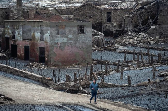 काठमाडौं। स्पेनमा ३० वर्ष पहिले पानीमा डुबेको गाउँ तालबाट बाहिर निस्किएको छ । १९९२ मा बाढीका कारण यो गाउँ जलमग्न भएको थियो । त्यसपछि जहिले पनि यहाँ पानीको स्तर कम हुन्छ यो गाउँ पानीबाट बाहिर आउँछ । तस्वीरमा यो गाउँ कुनै हलिउड फिल्मको सेटजस्तो देखिएको छ ।