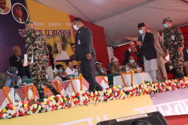 नेपाली कांग्रेसका सभापति शेरबहादुर देउवा,नेकपा माओवादी केन्द्रका अध्यक्ष पुष्पकमल दहाल ‘प्रचण्ड’ नेकपा (एकीकृत समाजवादी)का अध्यक्ष माधव कुमार नेपाल लगाएतका शिर्ष नेताहरु कार्यक्रम सभास्थलमा पुगेका छन्।