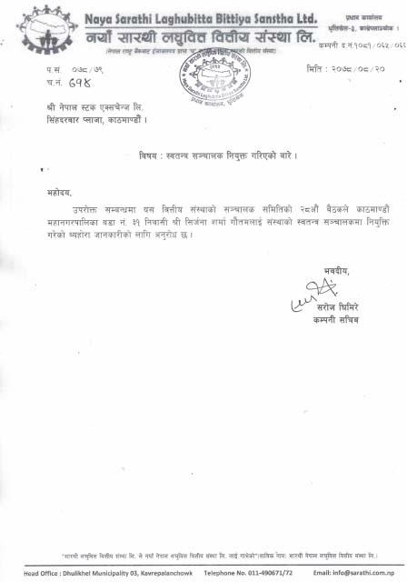 नयाँ सारथी लघुवित्तको स्वतन्त्र सञ्चालकमा गौतम नियुक्त