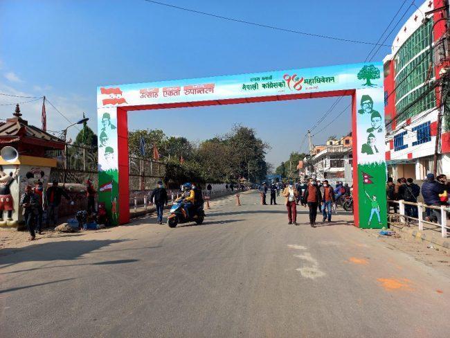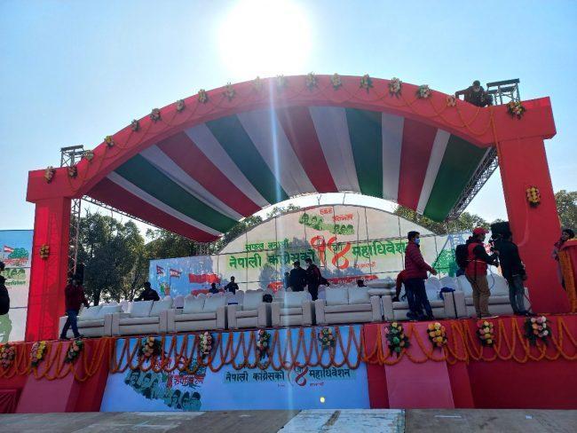 महाधिवेशनका लागि स्टेज निर्माणको काम सकिएर अहिले सजाउने काम भइरहेको छ । यस्तै, महाधिवेशन स्थल जाने विभिन्न सडकको बीचमा पनि स्वागत द्वार राखिएको छ ।
