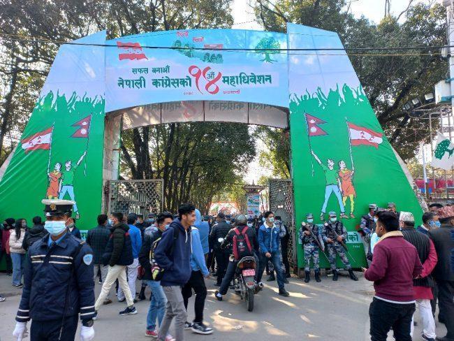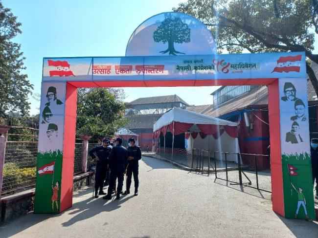 काठमाडौं। नेपाली कांग्रेसको १४औँ महाधिवेशन शुक्रबार (आज) देखि सुरू हुँदै छ । महाधिवेशन स्थल भृकुटीमण्डपमा यतिबेला कांग्रेस पार्टीको झण्डा, चुनाव चिन्ह रुख अंकित र फूलमालाले सजाइएको छ ।