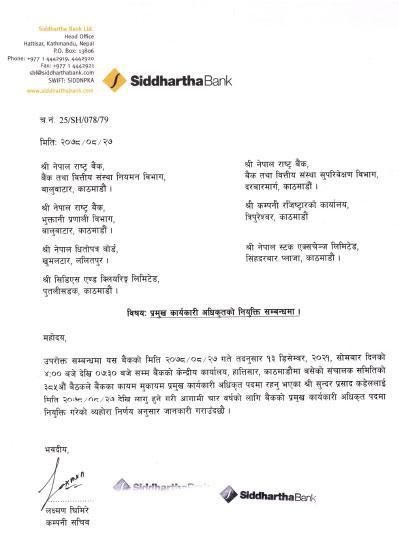 सिद्धार्थ बैंकको प्रमुख कार्यकारी अधिकृतमा सुन्दर प्रसाद कडेल नियुक्त