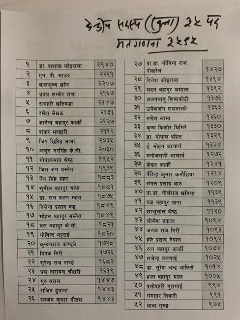 खुला केन्द्रीय सदस्यमा कोइरालाको अग्रता कायमै (सूचीसहित)