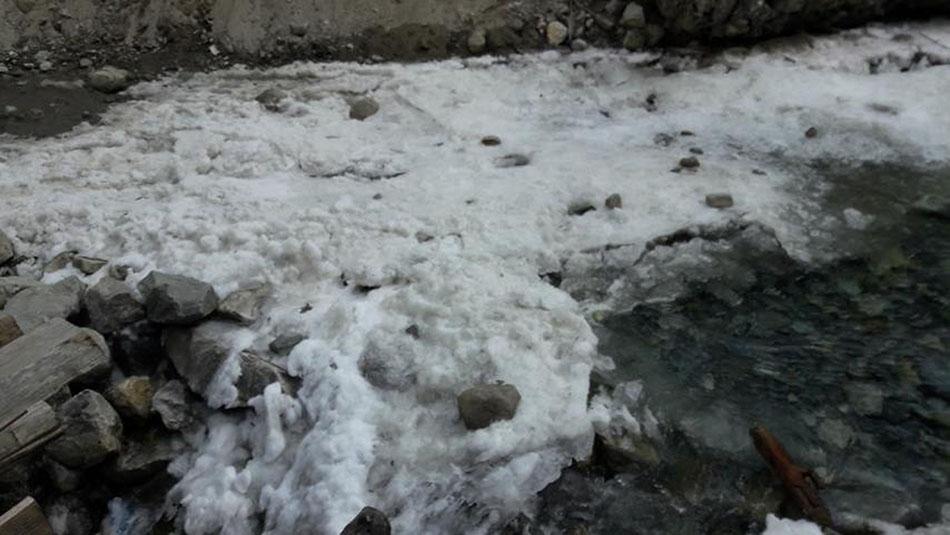 मनाङमा चिसो बढेसँगै अधिकांस खोला नालाका पानी हिउँमा परिणत। सदरमुकाम चामे आसपासका पानीको मुहानमा हिउँ जम्मेपछि पिउने पानी समेत पाउन कठिन भएको छ । यहाँको दैनिक तापक्रम माइनस १५ डिग्रीदेखि २० डिग्री सम्म पुग्ने गरेको छ। तस्वीर : नवीन लामिछाने/रासस