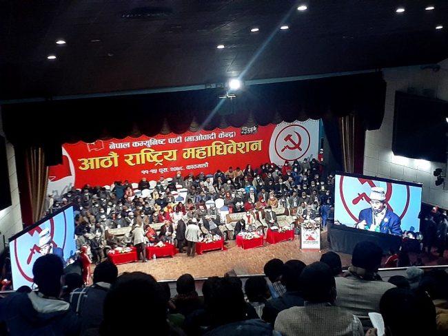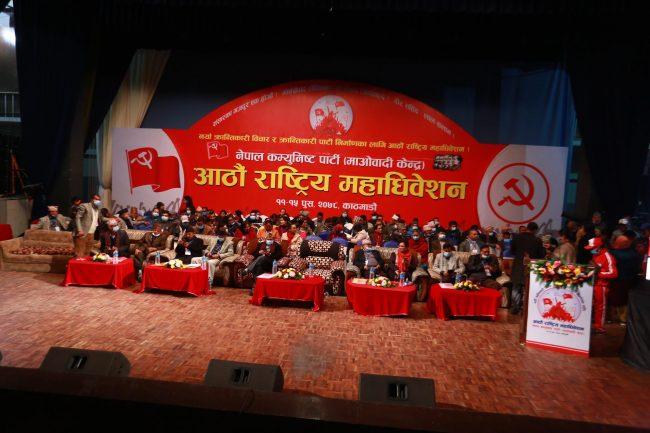 काठमाडौं । नेकपा माओवादी केन्द्रको आठौं महाधिवेशनको दोस्रो दिन सोमबार बन्दसत्रमा अध्यक्ष पुष्पकमल दाहाल प्रचण्डले वैचारिक तथा राजनीतिक प्रतिवेदन र नेता देव गुरुङले विधान मस्यौदा पेस गरेका छन् ।