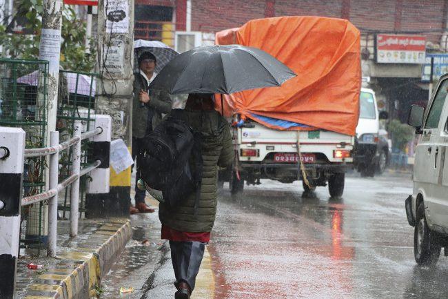 काठमाडौं। पश्चिमी न्यून चापीय प्रणाली सक्रिय बनेसँगै देशभर वर्षा भएको छ। उच्च पहाडी र हिमाली भेगमा मात्र होइन काठमाडौंका डाँडामा पनि हिउँ परेको छ। बुधबार बिहान काठमाडौंमा १०.७ मिलिमिटर वर्षा भएको मौसम पूर्वानुमान महाशाखाले जानकारी दिएको छ । काठमाडौंमा मंगलबार वर्षा भएको थिएन।