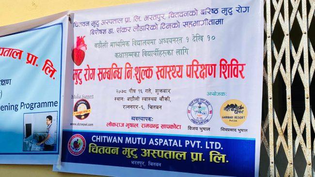 चितवन । रत्ननगर नगरपालिका वडा नं ६ चितवनमा रहेको बछौली माविमा अध्ययनरत विद्यार्थीहरुको शुक्रबार मुटु परीक्षण गरिएको छ ।