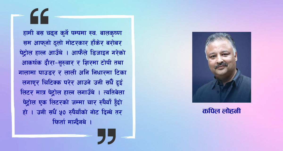 कपिल एकटक उसको कुरा सुनिरहन्छ। अघिसम्म निकै धनाढ्य लागेको साथी अहिले कता कता अलि दुखी र लाचारी पनि लाग्यो उसलाई।