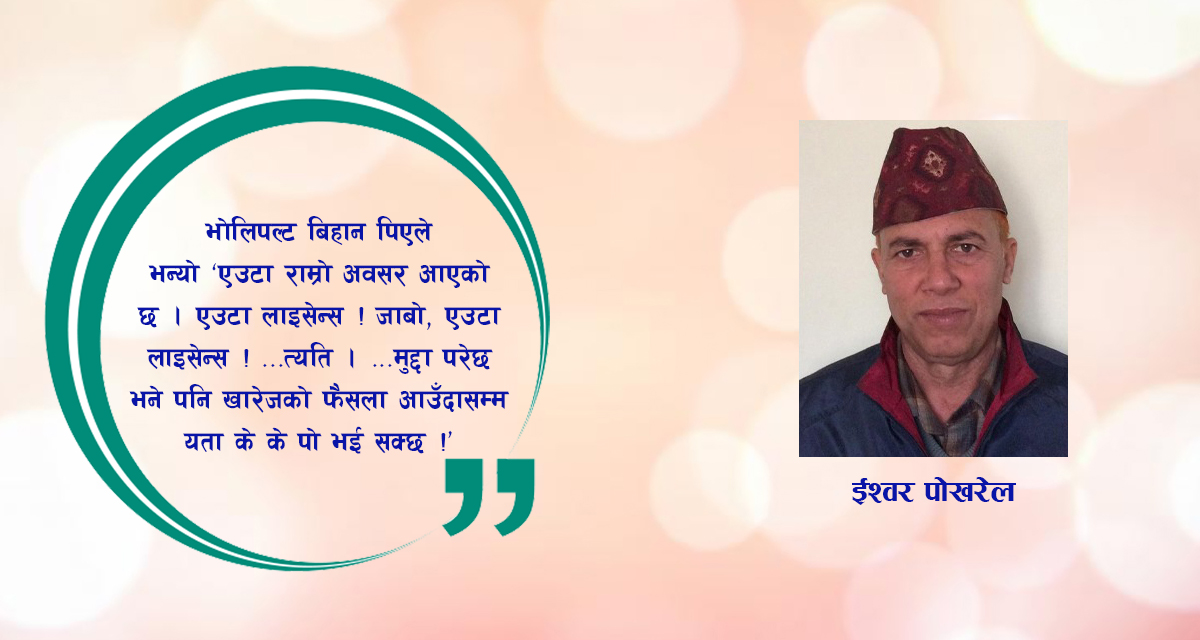 ‘अनि तिम्रो सुनाउ कपिल? कस्तो छ जिन्दगी? तिमी त स्कुल जीवनदेखि बिन्दास मान्छे है? आफ्नो इच्छा भएको कुरा गरि नै छोड्ने’ भन्दै ब्यङ्य्ग गर्दै रत्नवीरले अर्को चिया थप्यो।