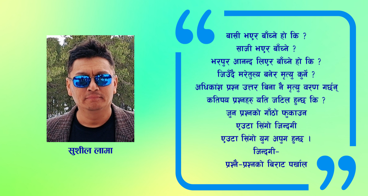 एकबारको जीवन जसरी पनि कट्छ नै ।बस आफूले चाहेको आफ्नो सपना पूरा गर्न पाउनु पर्यो। आफ्नो लागि बाँच्न पाए पो अरुको लागि पनि केही गर्न मजा आउँछ! आफू तृप्त नभै अरुलाई तृप्त कसरी बनाउने?