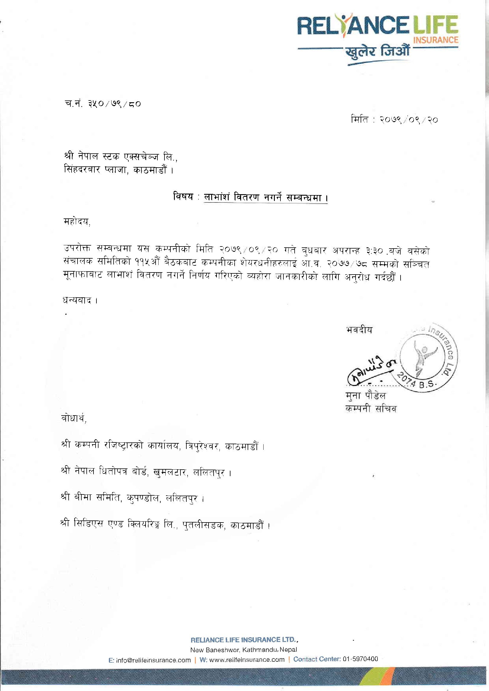 रिलायन्स लाइफ इन्स्योरेन्सले लाभांश वितरण नगर्ने