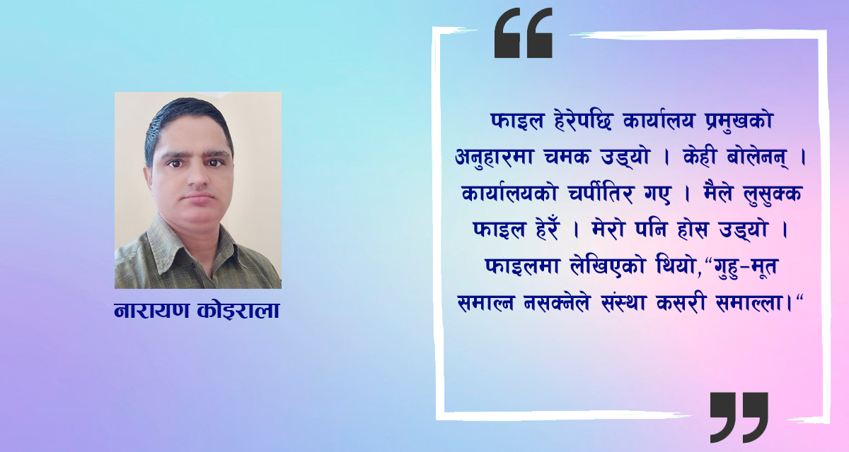 फाइलमा लेखिएको थियो,”गुहु-मूत समाल्न नसक्नेले संस्था कसरी समाल्ला।”