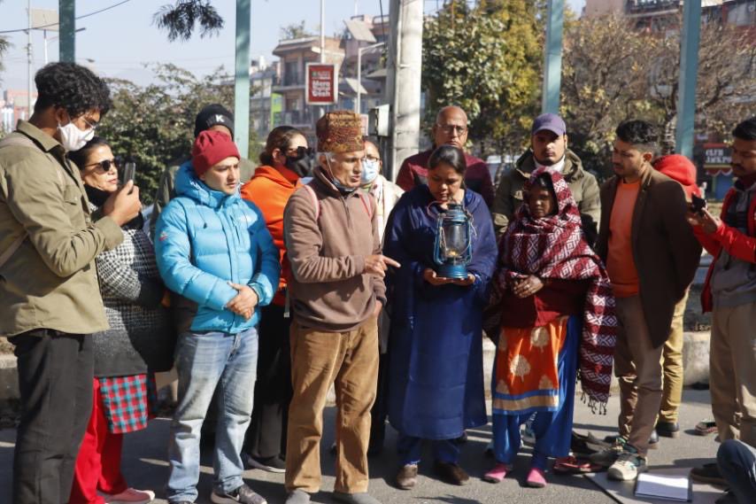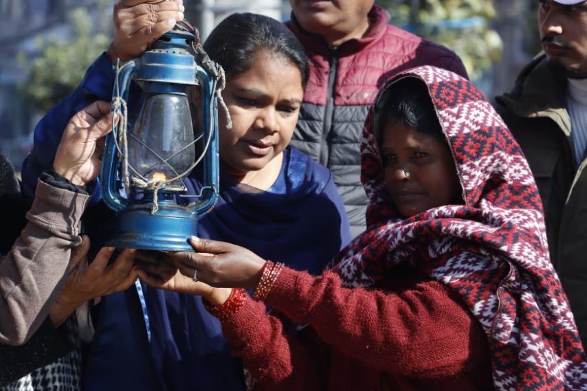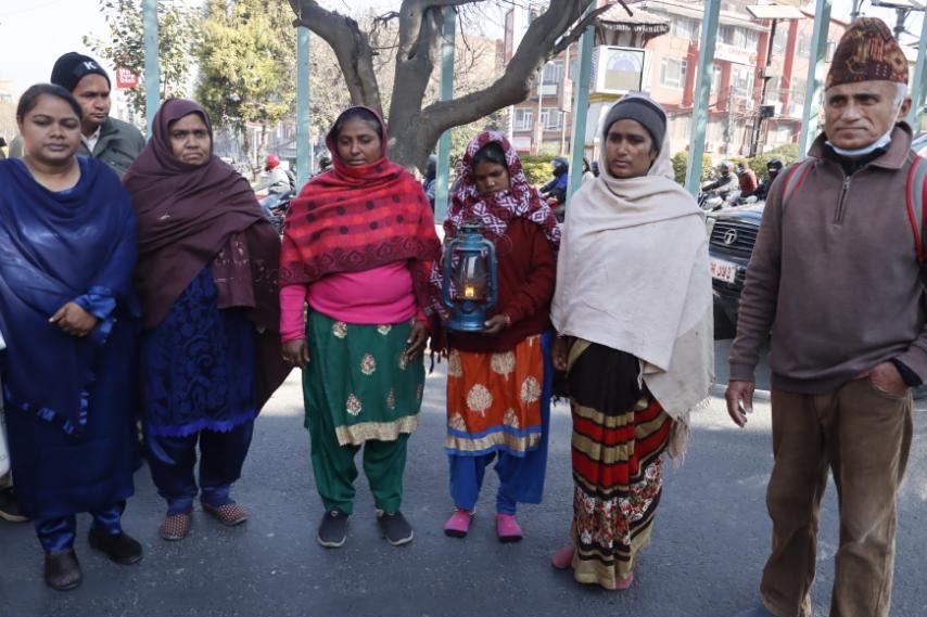 उनीहरूले कुर्मीको न्यायका लागि लाल्टिन बाल्दै प्रदर्शन गरेका छन्। बाँकेकी निर्मला कुर्मीको सम्पत्ति हडपेर बेपत्ता पारेकाे आराेप छ।