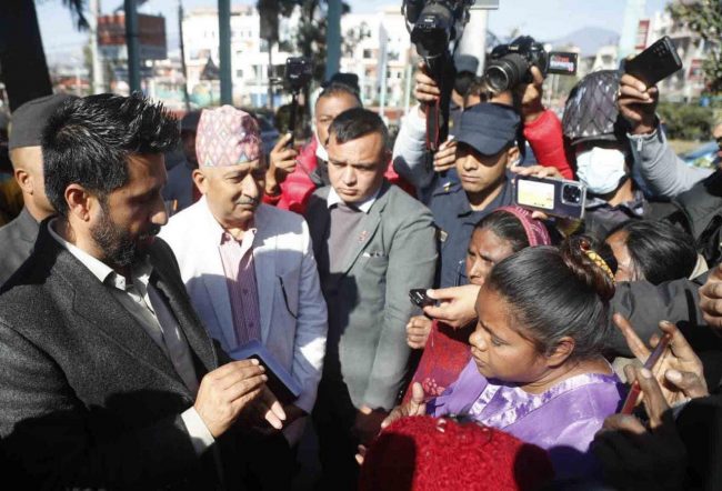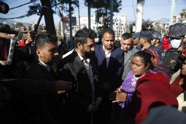 काठमाडौं। नेपालगन्जकी निर्मला कुर्मीको अपहरण र बेपत्ता बनाइएपछि न्यायका लागि माइतीघर मण्डलामा धर्नारत अधिकारकर्मीहरूलाई गृहमन्त्री रवि लामिछानेले शनिबार भेट गरेका छन्। भेटका क्रममा गृहमन्त्रीले धर्नामा रहेका अधिकारकर्मी र आफन्तहरूलाई न्याय पाउनेमा ढुक्क हुन आग्रह गरे।