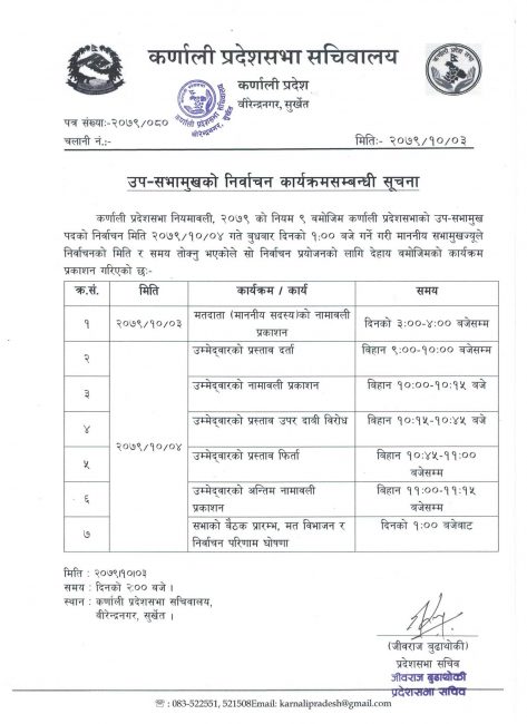 कर्णाली प्रदेशसभाको उपसभामुख बुधबार चयन गरिने