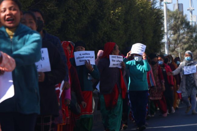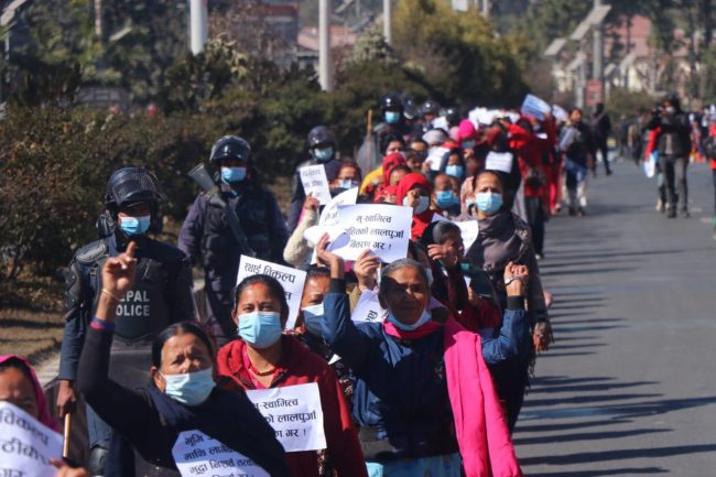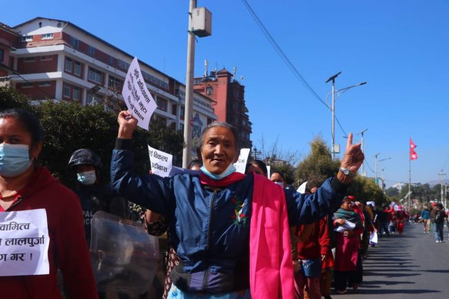 काठमाडौं। संयुक्त राष्ट्रिय सुकुम्बासी मोर्चाले काठमाडौंमा प्रदर्शन गरेको छ। काठमाडौं महानगरले बस्ती खाली गराउन खोजेपछि आन्दोलनमा उत्रिएका सुकुम्बासीले डोजर आतंक बन्द गरेर भू–स्वामित्व प्रदान गर्न माग गरेका छन्।