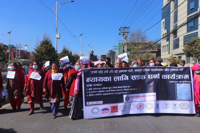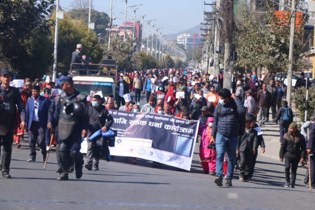 माइतीघर मण्डलादेखि बानेश्वरसम्म प्रदर्शन गरेका गरेका उनीहरुले ‘डोजर आतंक बन्द गर, जबरजस्ती उठीबास बन्द गर, महानगरको सम्झौता कार्यन्वयन गर, काठमाडौं सुकुम्बासीको पनि हो, सुकुम्बासीमाथि लगाएको मुद्दा निसर्त फिर्ता गर’ जस्ता नाराअंकित प्लेकार्ड बोकेका थिए।