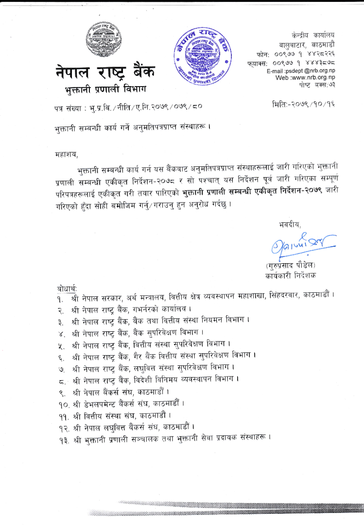 नेपाल राष्ट्र बैंकले एकीकृत निर्देशन, २०७९’ जारी गर्दै एक बैंकको एटिएम कार्ड अर्को बैंक तथा वित्तीय संस्थाको एटीएममा प्रयोग गर्दा १५ रुपैयाँसम्म मात्र शुल्क लाग्ने जनाएको छ । यसअघि बैंक तथा वित्तीय संस्थाले प्रति कारोबार २० रुपैयाँसम्म शुल्क लिन गरेको थियो ।