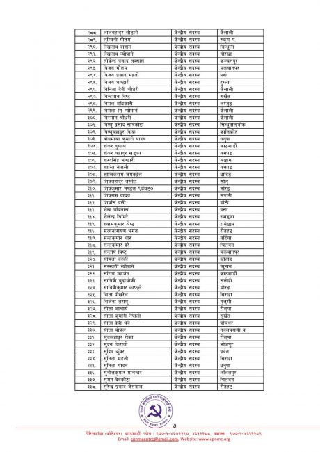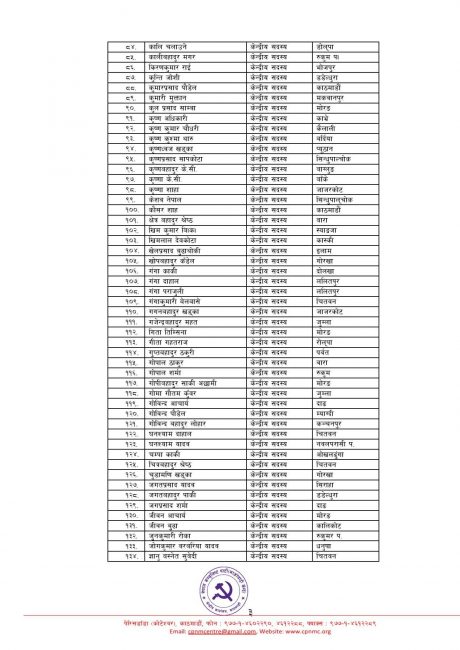 गत बुधवार बसेको स्थायी कमिटी बैठकले पार्टी महाधिवेसन सम्पन्न भएको एक बर्ष पछि केन्द्रिय समितिलाई पुर्णता दिएको छ । जसअनुसार २२ सदस्यीय पदाधिकारी, ४४ सदस्यीय स्थायी समिति तथा ३८६ सदस्यीय केन्द्रीय समिति चयन भएका छनु ।