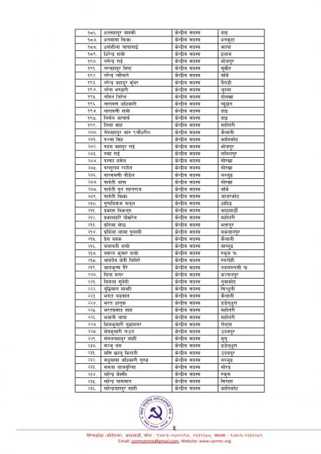 यस्तै बैठकले २०२ सदस्यीय वैकल्पिक केन्द्रीय समिति पनि मनोनयन गरेको छ । केन्द्रिय समितिले पुर्णता पाएसँगै आजै केन्द्रिय समिति बैठक पनि आब्हान गरिएको छ ।