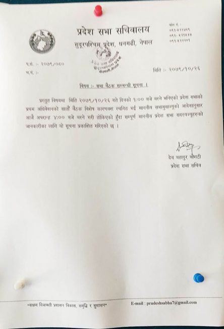 सुदूरपश्चिम प्रदेश सभा बैठक ४ बजे सर्‍यो
