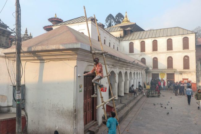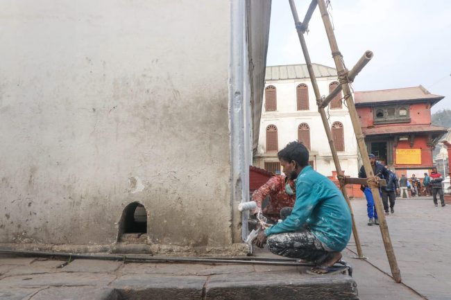 काठमाडौं। महाशिवरात्रिको तयारीका लागि पशुपतिनाथ परिसरमा रंगरोगन हुँदैछ।