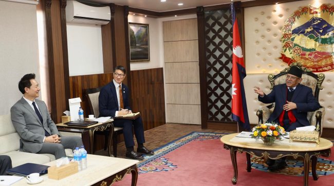 काठमाडाैं। प्रधानमन्त्री पुष्पकमल दाहाल ‘प्रचण्ड’ले दक्षिण कोरियाका राष्ट्रपतिका विशेष दूत सुङ मिन जङसहितको आठ जनाको टोलीसँग शिष्टाचार भेटवार्ता गरेका छन्।