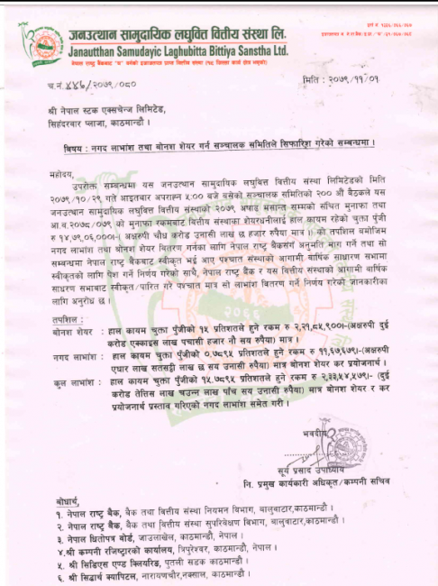 जनउत्थान सामुदायिक लघुवित्तको लाभांश घोषणा