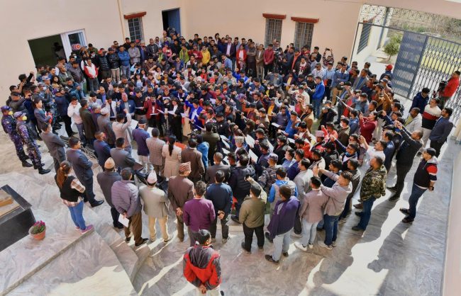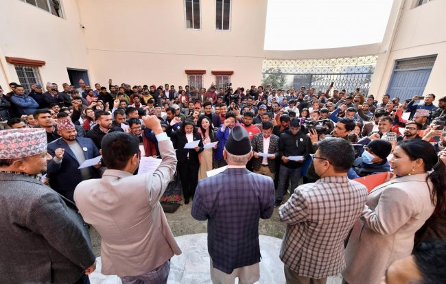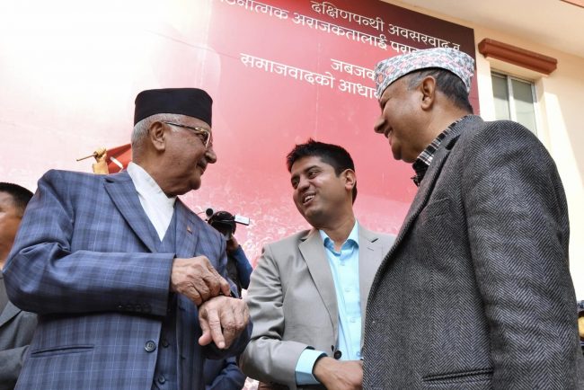 अखिलको नयाँ नेतृत्वलाई सपथ गराउँदै दुई महिनाभित्र सबै जनसंगठनको सम्मेलन गर्ने ओलीको उद्घोष