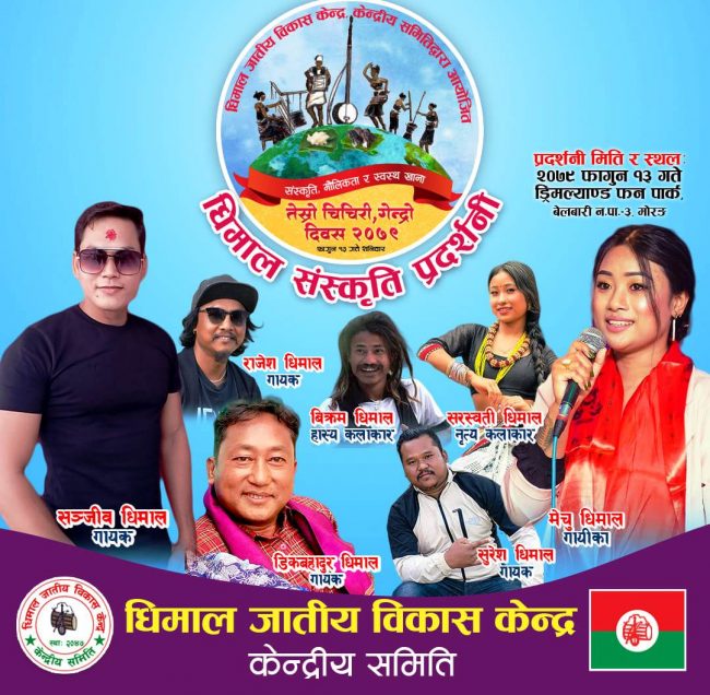 “सँस्कृति, मौलिकता र स्वस्थ खाना” भन्ने नाराका साथ फागुन १३ गते शनिबार तेस्रो चिचिरी, गेन्द्रो दिवस तथा धिमाल संस्कृति प्रदर्शनी आयोजना गर्न लागिएको हो ।