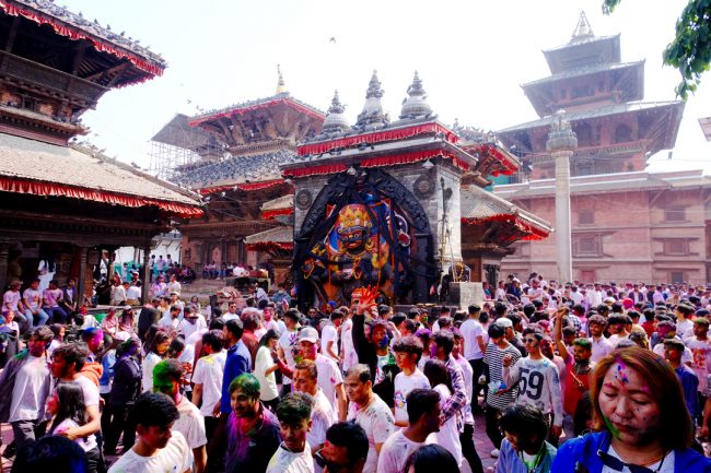काठमाडाैं। हिन्दुहरुको रङहरुको पर्व होली मनाउन सोमबार काठमाडौंको वसन्तपुर दरबार क्षेत्रमा भीड लागेको थियाे।