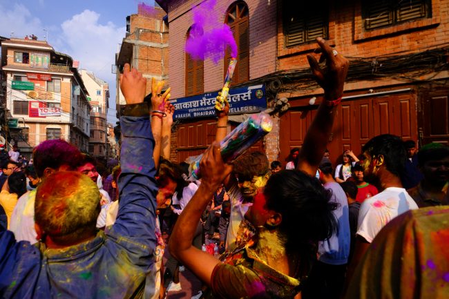 रातो सिन्दुरको धुलो लगायतका विभिन्न रङहरु एकअर्कालाई छर्काएर पर्वमा मानिसहरु सहभागी हुन्छन्।