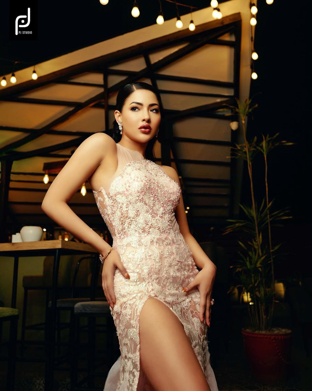 उनले गुलाबी कलरको थाई हाइ स्लिट ड्रेश लगाएकी छिन्। यस ड्रेसमा उनी एकदम आकर्षक देखिएकी छिन्। न्युड लिपस्टिक र मेकअपमा अभिनेत्रीको स्टाइल हेर्न लायक छ। यस लुकमा नायिका निकै सुन्दर र आकर्षक देखिएकी छिन्। हेर्नुहोस नायिकाको ग्ल्यामरस लुक्सका तस्विरहरु: