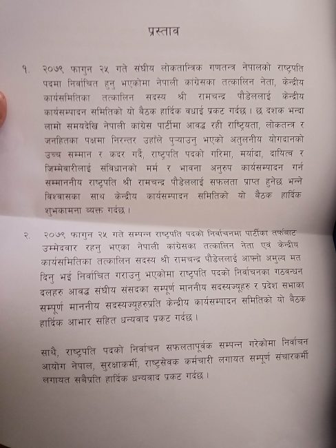 बुधबार बसेको कांग्रेसको केन्द्रीय कार्यसम्पादन समिति बैठकले उपराष्ट्रपतिमा जसपा उम्मेदवार रामसहाय प्रसाद यादवलाई सघाउने निर्णय गरेको प्रवक्ता प्रकाश शरण महतले जानकारी दिए।