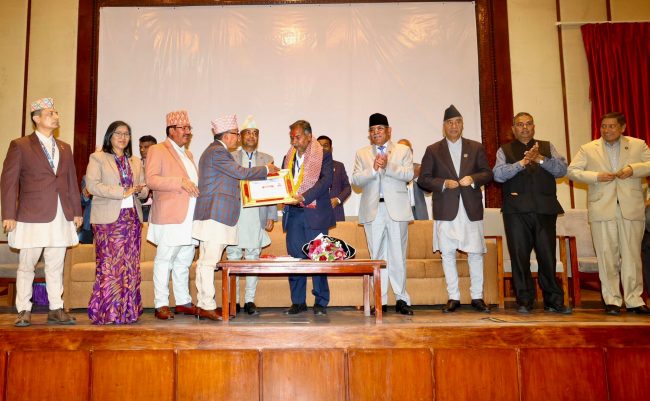 काठमाडौं। नवनिर्वाचित उपराष्ट्रपति रामसहाय प्रसाद यादवलाई निर्वाचन आयोगले उपराष्ट्रपति पदमा निर्वाचित भएको प्रमाणपत्र प्रदान गरेको छ।