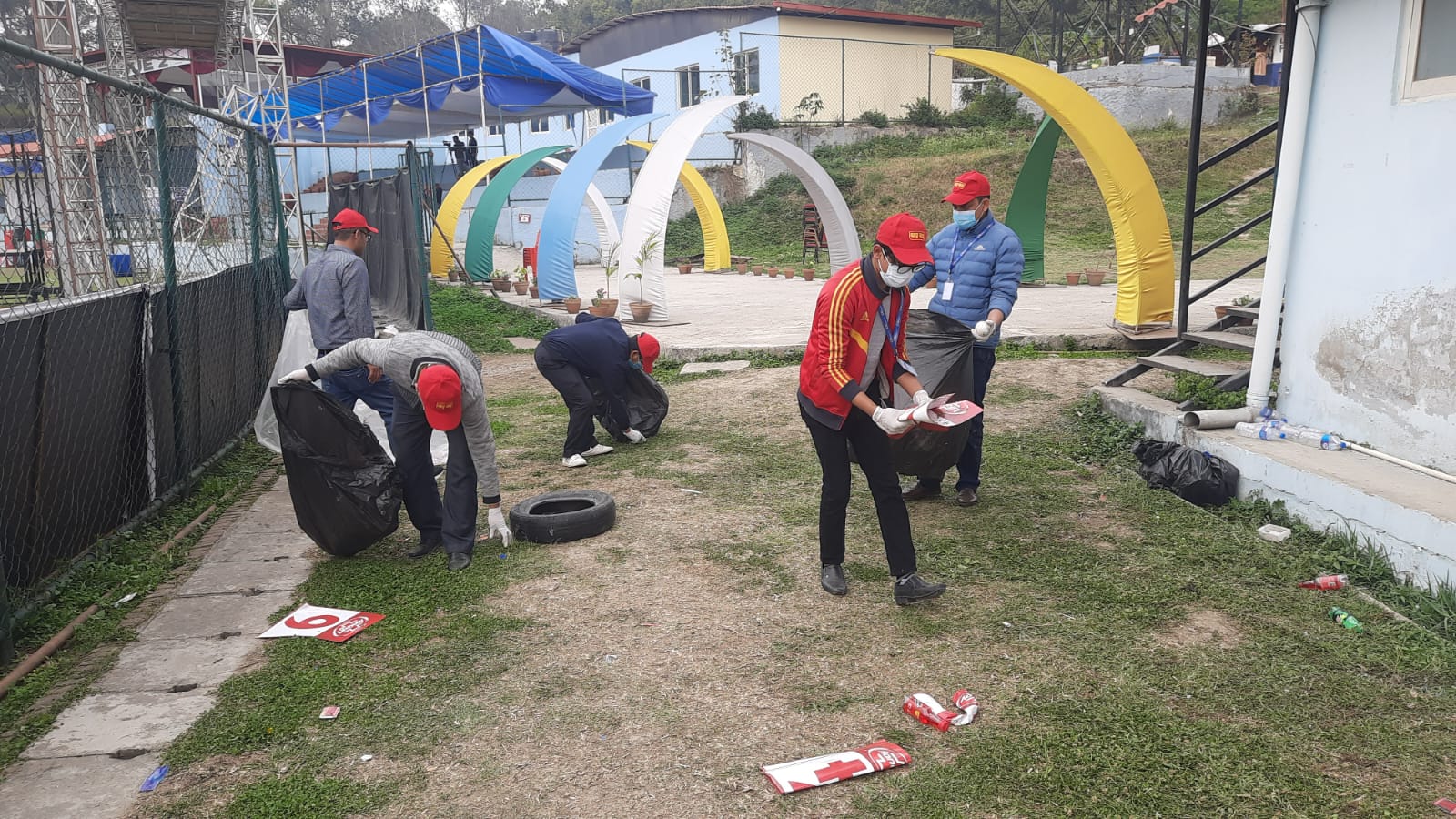 वाईवाईद्वारा कीर्तिपुरस्थित क्रिकेट रङ्गशालाको सरसफाई