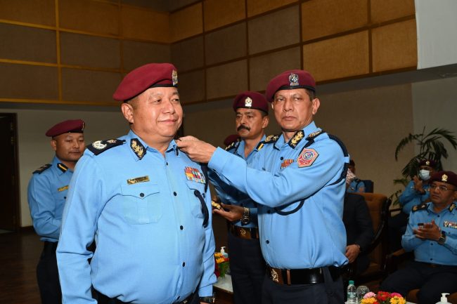 बुधबार प्रहरी प्रधान कार्यालयमा प्रहरी महानिरीक्षक (आईजीपी) धिरजप्रताप सिंहले एआईजीमा बढुवा भएका वसन्तबहादुर कुँवर, टेकप्रसाद राई, दिपक थापा, श्यामलाल ज्ञवाली र किरण बज्राचार्यलाइलाई दज्र्याही चिह्न प्रदान गरेका थिए।