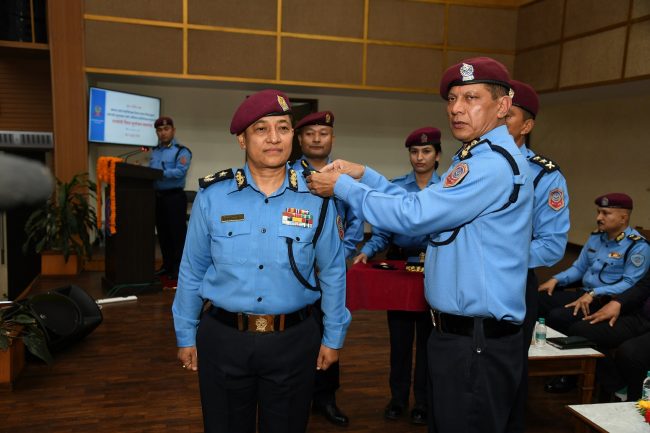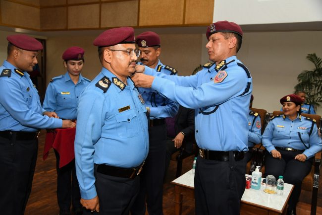 बुधबार प्रहरी प्रधान कार्यालयमा प्रहरी महानिरीक्षक (आईजीपी) धिरजप्रताप सिंहले एआईजीमा बढुवा भएका वसन्तबहादुर कुँवर, टेकप्रसाद राई, दिपक थापा, श्यामलाल ज्ञवाली र किरण बज्राचार्यलाइलाई दज्र्याही चिह्न प्रदान गरेका थिए।